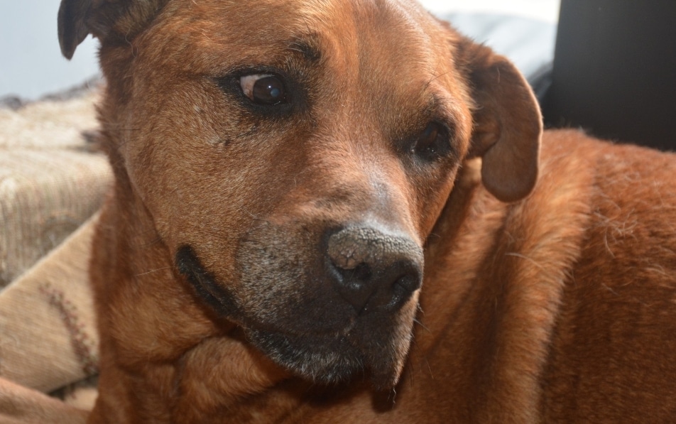 Solange kein DNA-Test vorliegt, kann Boomer leider nicht nach Deutschland reisen, da er  wahrscheinlich ein Listenhund ist.("Boomer hat Alterswarzen")