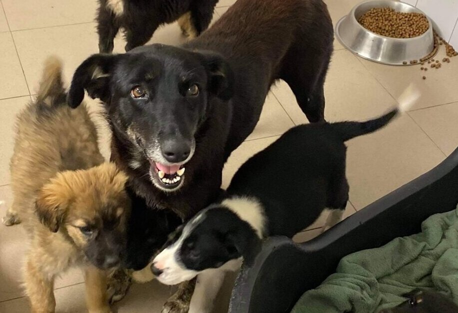 Die bezaubernde Senta wurde mit ihren sechs Babys von einem Mann versorgt. Sie hatten ihr Quartier bei ihm im Garten bezogen. Der Zaun war leider nicht der Sicherste und so bat der Mann Claudia um Hilfe, denn die Kleinen fanden immer öfter einen Weg aus dem Garten. Die stark befahrene Straße, die direkt daran angrenzte, war eine zu große Gefahr für die Welpen und ihre Mama.