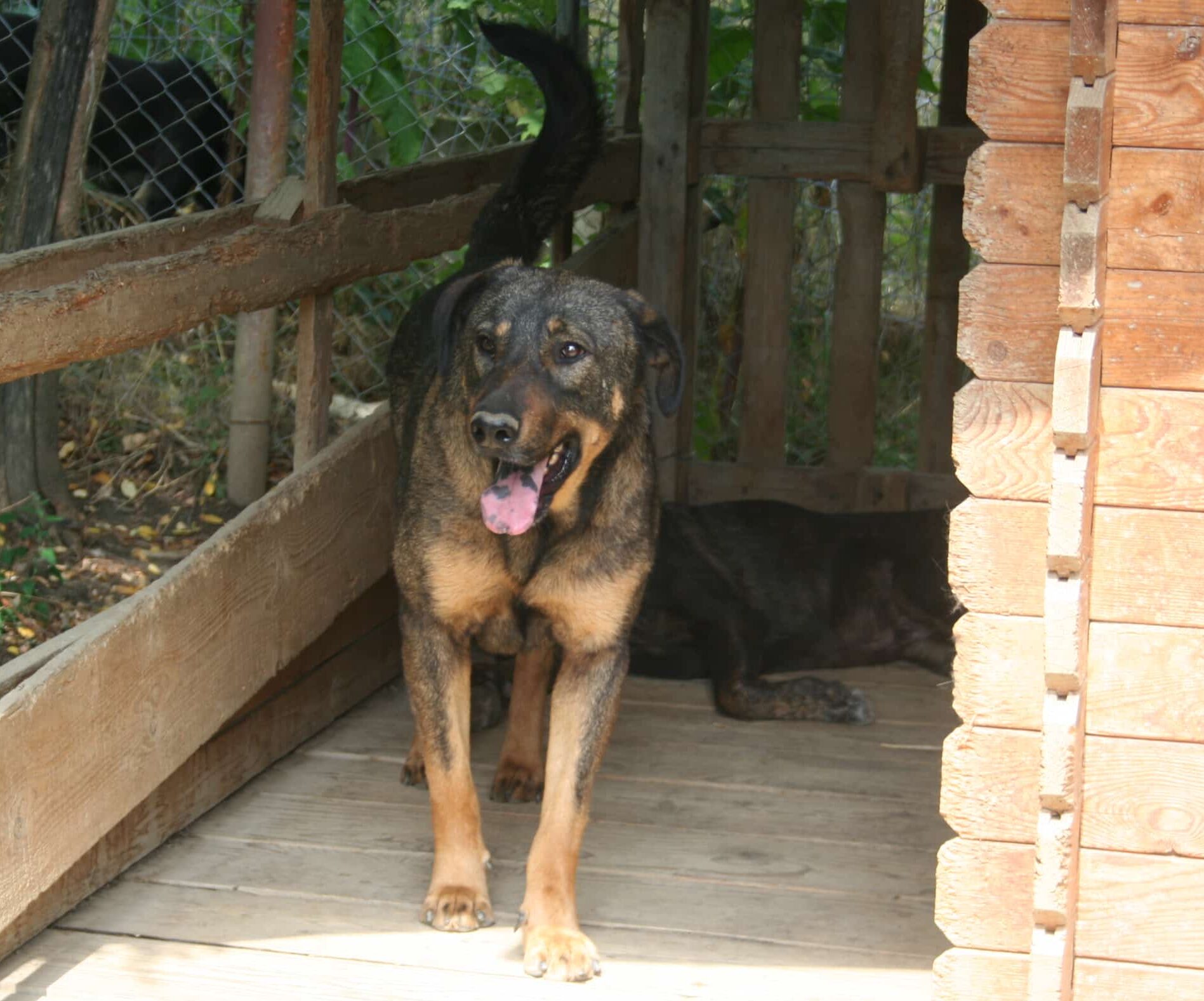 Zerres kam als kleiner Welpe mit Geschwistern und Mama Zefania in Claudias Obhut. Er ist hier in Sicherheit erwachsen geworden. Er ist inzwischen ein großer (ca. 60 cm Schulterhöhe), kräftiger Rüde.